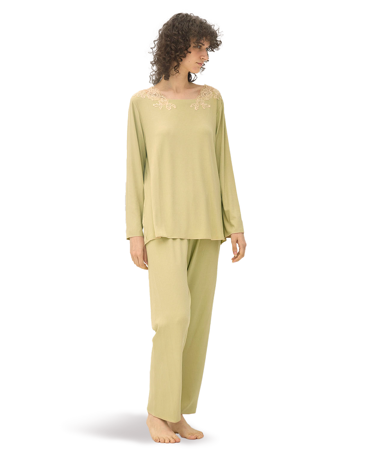 Luxury Rib Pajamas with Lace Neckline
