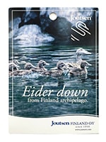 JOUTSEN(ヨーツェン)のアイダーダウンは、フィンランドの群島に生息する野生のアイダー(海鳥)の巣から、繁殖後に丁寧に採取される非常に希少な羽毛です。 アイダーは家畜化されておらず、自然のままに暮らす水鳥のため、その羽毛は驚くほど軽く、柔らかく、そして暖かさは別格。